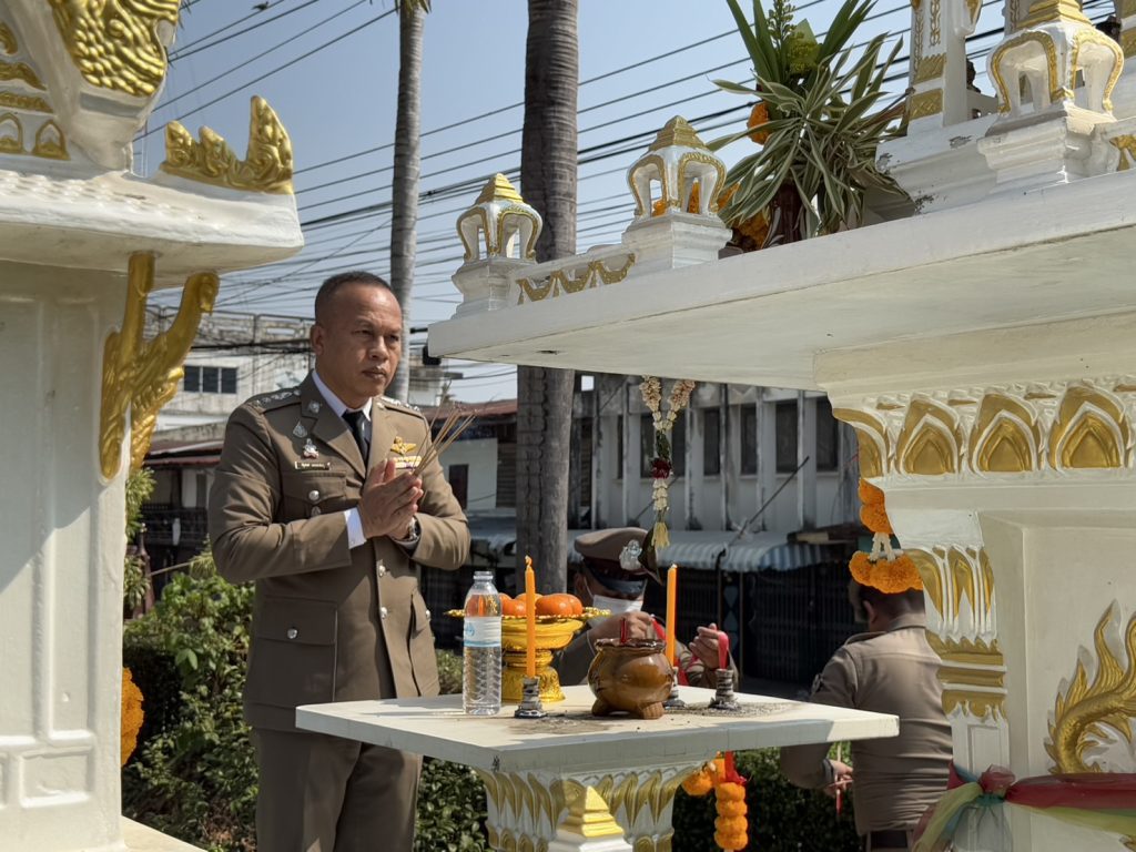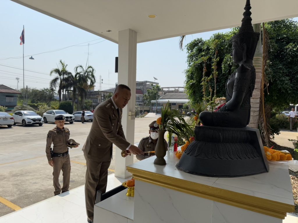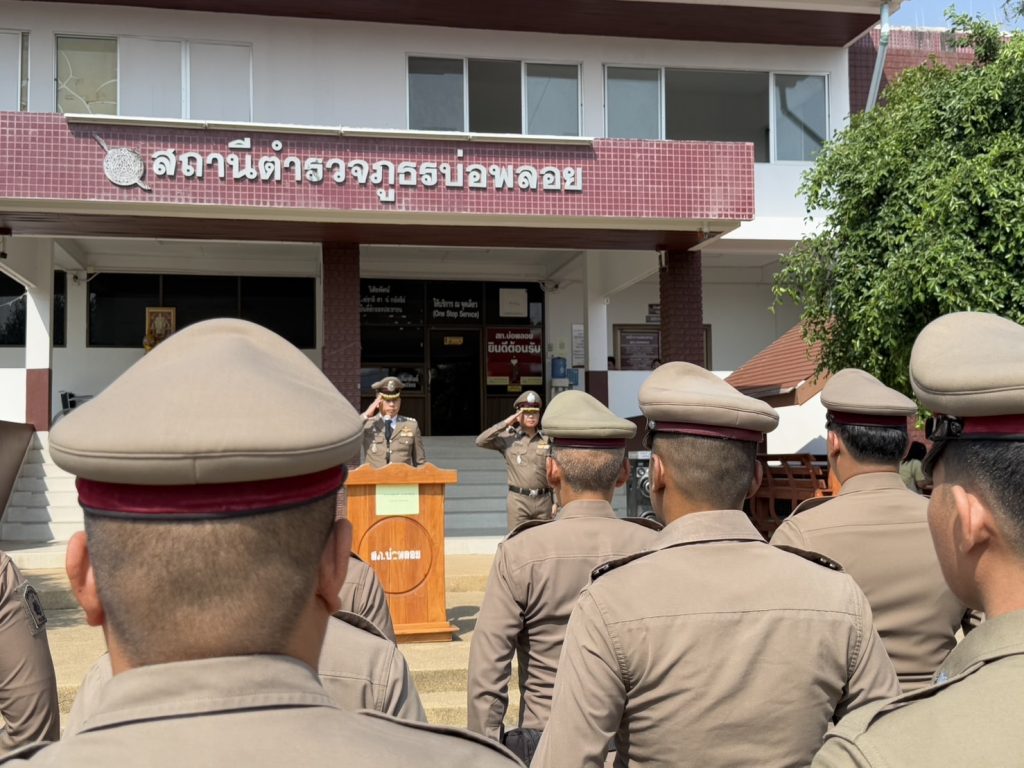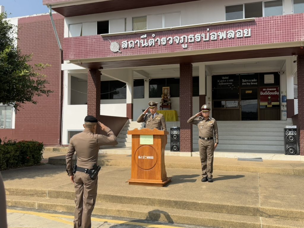 โดยมี พ.ต.อ.จอมพล รุจิรดำรงค์ชัย และข้าราชการตำรวจ สภ.บ่อพลอยเข้าร่วมพิธี