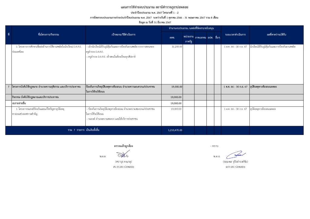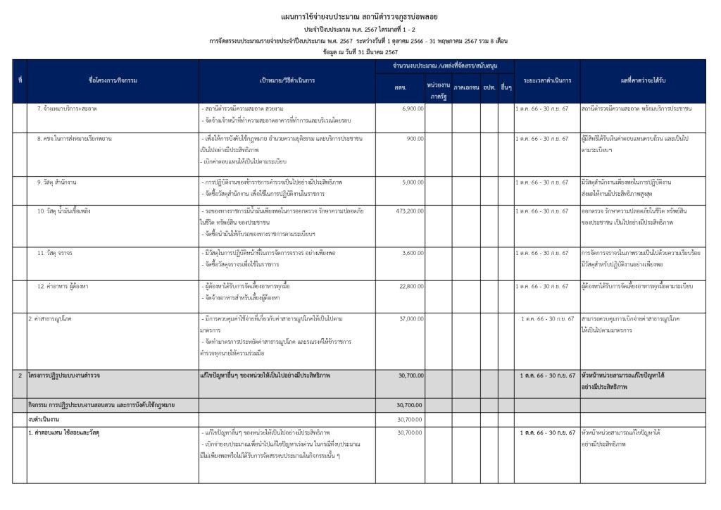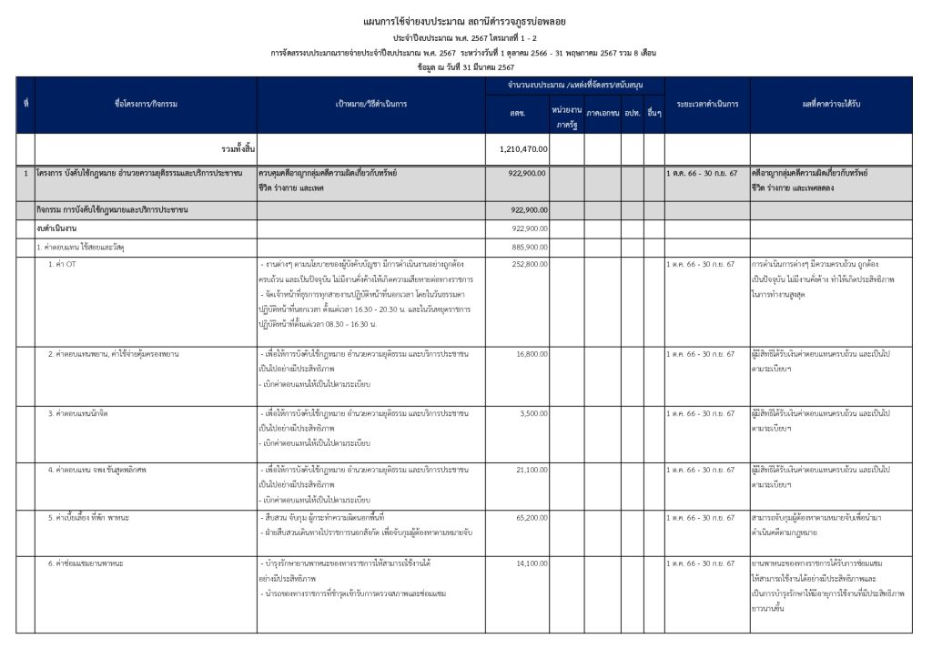 แผนการใช้จ่ายงบประมาณประจำปีงบประมาณ พ.ศ. 2567