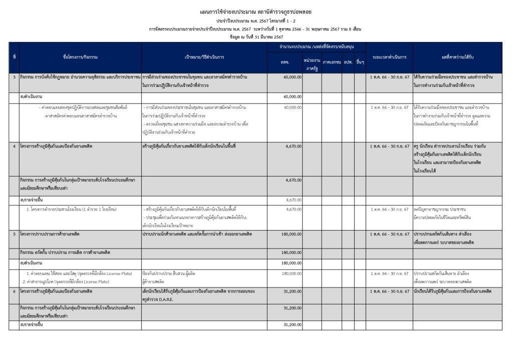 รายงานผลการใช้จ่ายงบประมาณรอบ 6 เดือนแรก ปีงบประมาณ พ.ศ. 2567