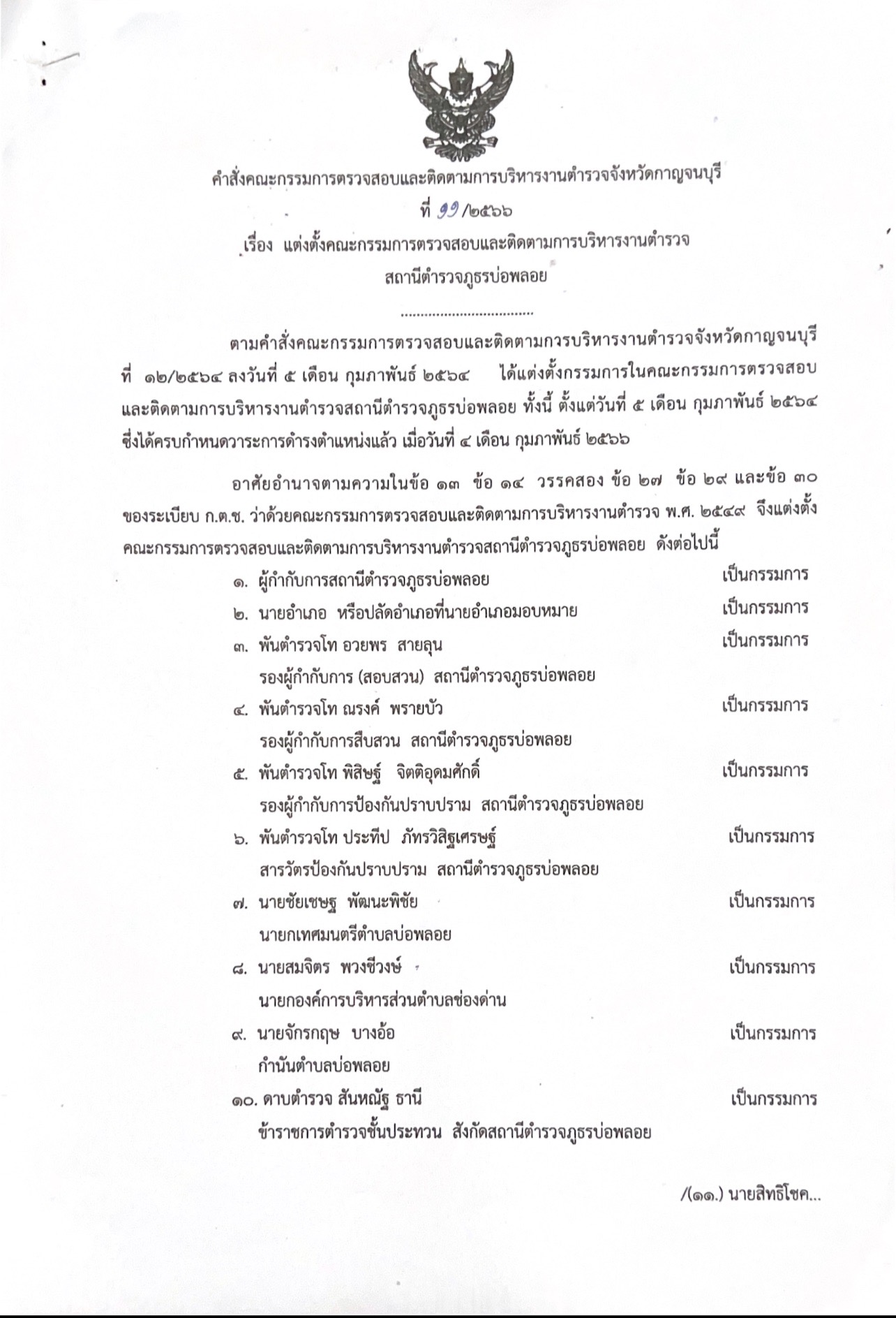 คำสั่งแต่งตั้ง กต.ตร. สภ.บ่อพลอย